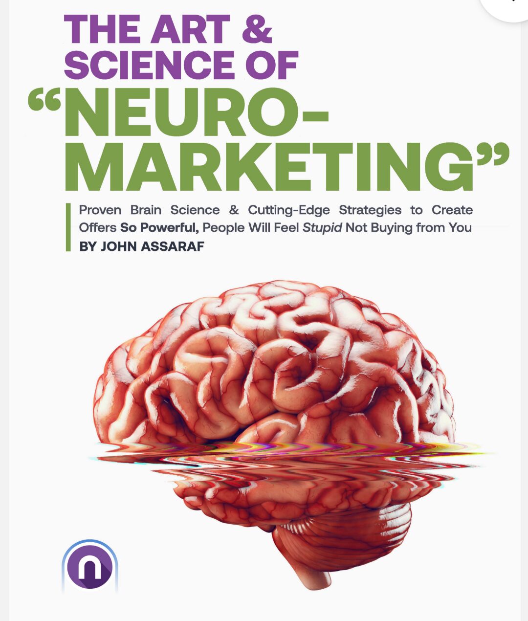 The image is a book cover titled “The Art & Science of Neuro-Marketing”. The title is displayed prominently at the top in bold purple and green lettering. Beneath the title, a subtitle reads: “Proven Brain Science & Cutting-Edge Strategies to Create Offers So Powerful, People Will Feel Stupid Not Buying from You”, followed by the author’s name, John Assaraf.